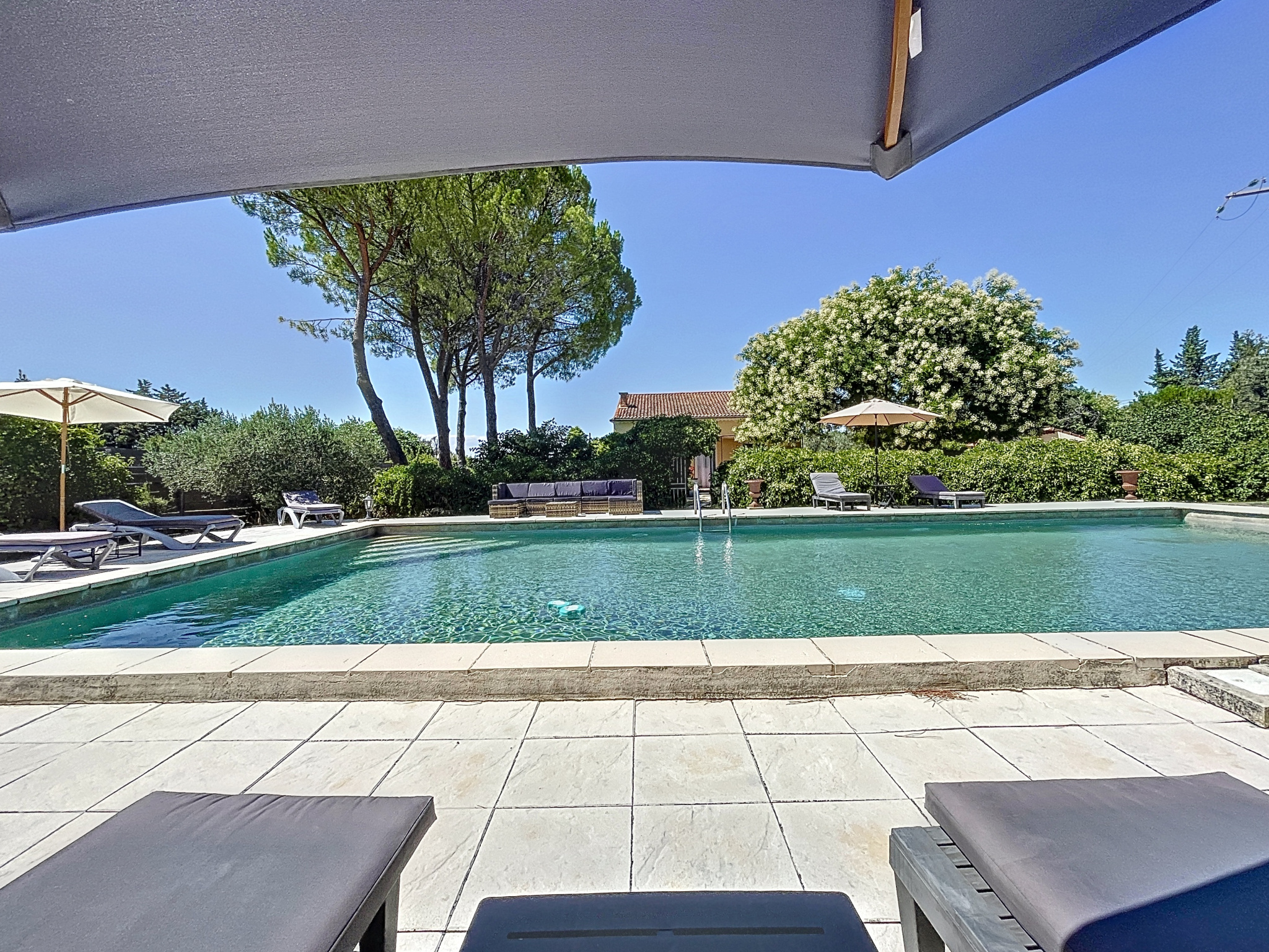 Entre Carpentras et Le Barroux, en campagne de Carpentras, ce beau mas en pierre de 224 m2 rénové dans un jardin clôturé de 3263 m2 avec vue Ventoux vous offre un potentiel exceptionnel d'hébergement. Il se niche à l'ombre des tilleuls l'été et profite du soleil l'hiver. Composée de deux habitations qui communiquent, cette demeure est parfaite avec ses six chambres dont une avec mezzanine pour accueillir famille et amis sous un même toit tout en préservant l'intimité de chacun. Au rez de jardin deux espaces de vue distincts. Des terrasses avec des orientations différentes pour profiter des extérieurs à toute heure de la journée. Un espace piscine intimiste et sécurisée avec une grande plage permet de profiter de ce petit coin de verdure en s'imprégant de la douceur de vivre et de la vue du Géant Bleu. Un lieu de vie très agréable où poser ses meubles immédiatement. LA PROPRIÉTÉ EST VENDUE ENTIEREMENT MEUBLEE. Un grand parking privé avec portail automatique. 'Une propriété devenue rare au Sud du Mont-Ventoux à quelques minutes en voiture de la voie rapide permettant de gagner rapidement les axes routiers stratégiques.' Un bar-restaurant de village et des services à pied. La toiture a été révisée récemment. Le bien est raccordé à l'eau de la ville et bénéficie également d'un forage. A 20 minutes d'Avignon (gare TGV, autoroutes). A proximité de Caromb, St Hippolyte le Graveyron, Beaumes de Venise, aux portes de la ville et tout à côté des Dentelles de Montmirail.