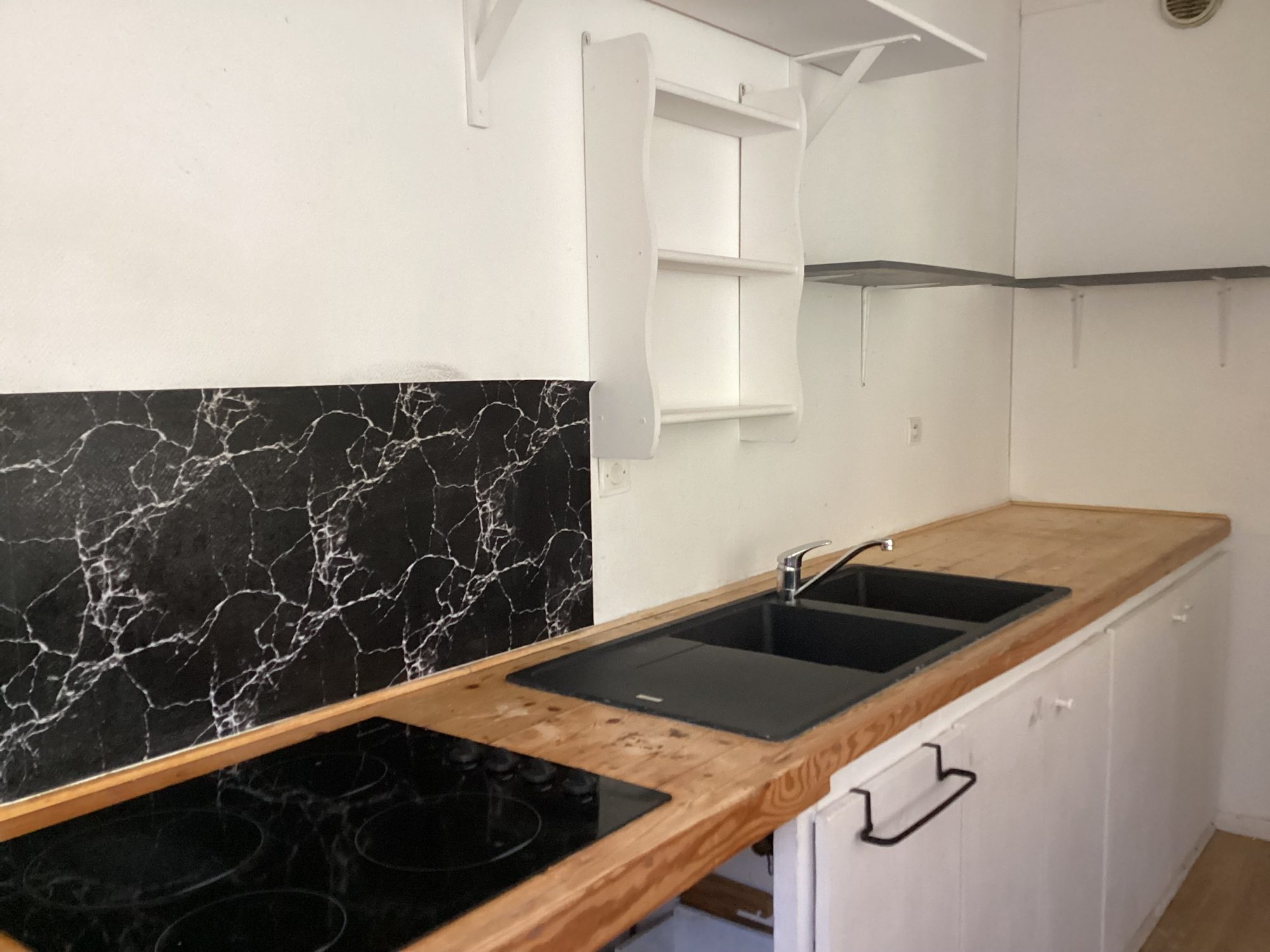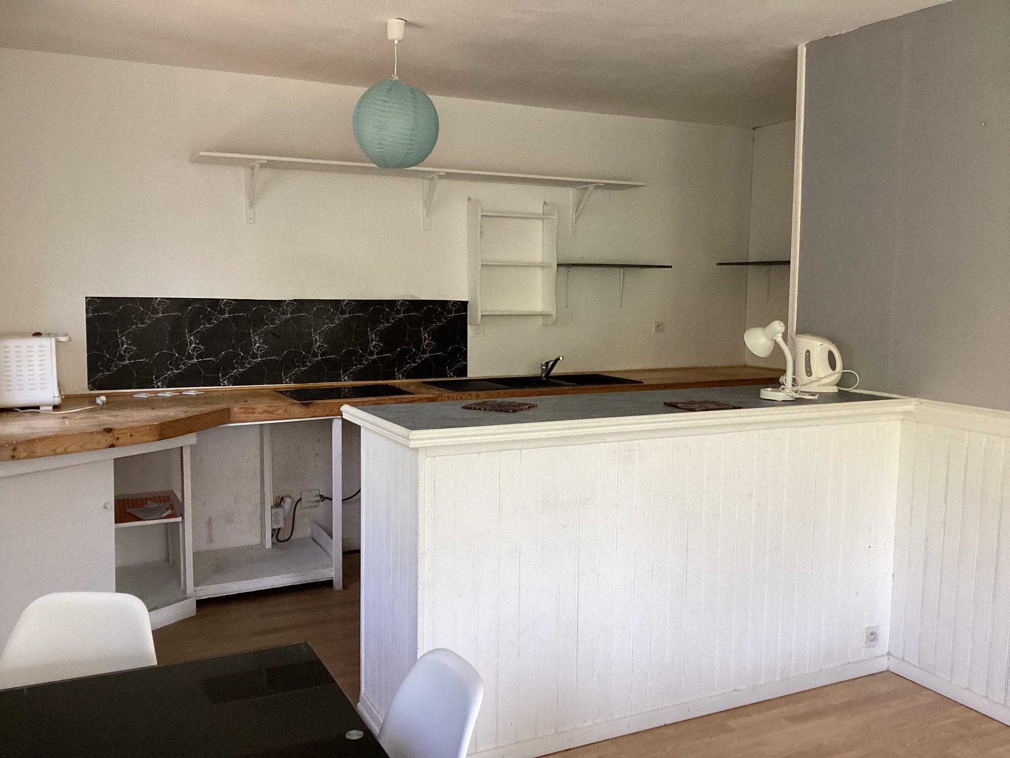 ...Une entrée donne sur un vaste séjour en L avec coin cuisine avec un accès balcon...
