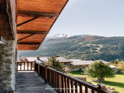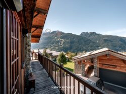 Sa grande terrasse et son vaste espace extérieur s'ouvrent sur une vue panoramique à couper le souffle, embrassant la vallée et les sommets environnants. Une cheminée avec foyer ouvert sur la terrasse prolonge l'ambiance chaleureuse, invitant à profiter des soirées d'altitude en toute saison. Trois balcons viennent compléter cet espace de vie, tandis qu'un potager aménagé sur une partie de la parcelle apporte une touche de charme et d'authenticité supplémentaire.