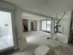 Le niveau principal accueille une vaste pièce à vivre baignée de lumière avec cuisine ouverte, prolongée par une belle terrasse de près de 25 m² exposée plein sud, idéale pour profiter du soleil en toute saison. Une première chambre ainsi qu'une salle d'eau avec WC complètent ce niveau. Deux loggias supplémentaires offrent des espaces extérieurs intimistes, parfaits pour un coin lecture ou une pause café. À l'étage, l'espace nuit se compose de deux chambres supplémentaires avec salle d'eau, ainsi que d'une suite parentale disposant de sa propre salle de bain avec WC. Une belle opportunité pour les familles en quête d'espace et de confort dans un environnement serein et moderne.