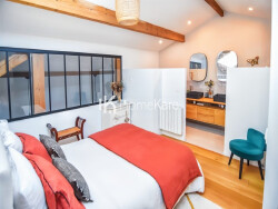 Côté nuit, une suite parentale de 14 m2 et une seconde chambre avec sa salle d'eau d'environ 10 m2. Possibilité de créer une troisième chambre.
