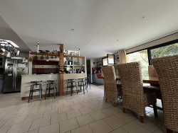 Il se compose en effet d'une habitation sur 2 niveaux avec un salon de 40m2, un séjour/cuisine de 52m2, plusieurs bureaux ; à l'étage d'un immense palier, de 3 chambres, et de 2 salles d'eau, mais il dispose également d'un cabinet médical, d'un garage, d'une terrasse couverte et cerise sur le gâteau : d'une piscine enterrée dans un joli jardin, le tout sur environ 500m2