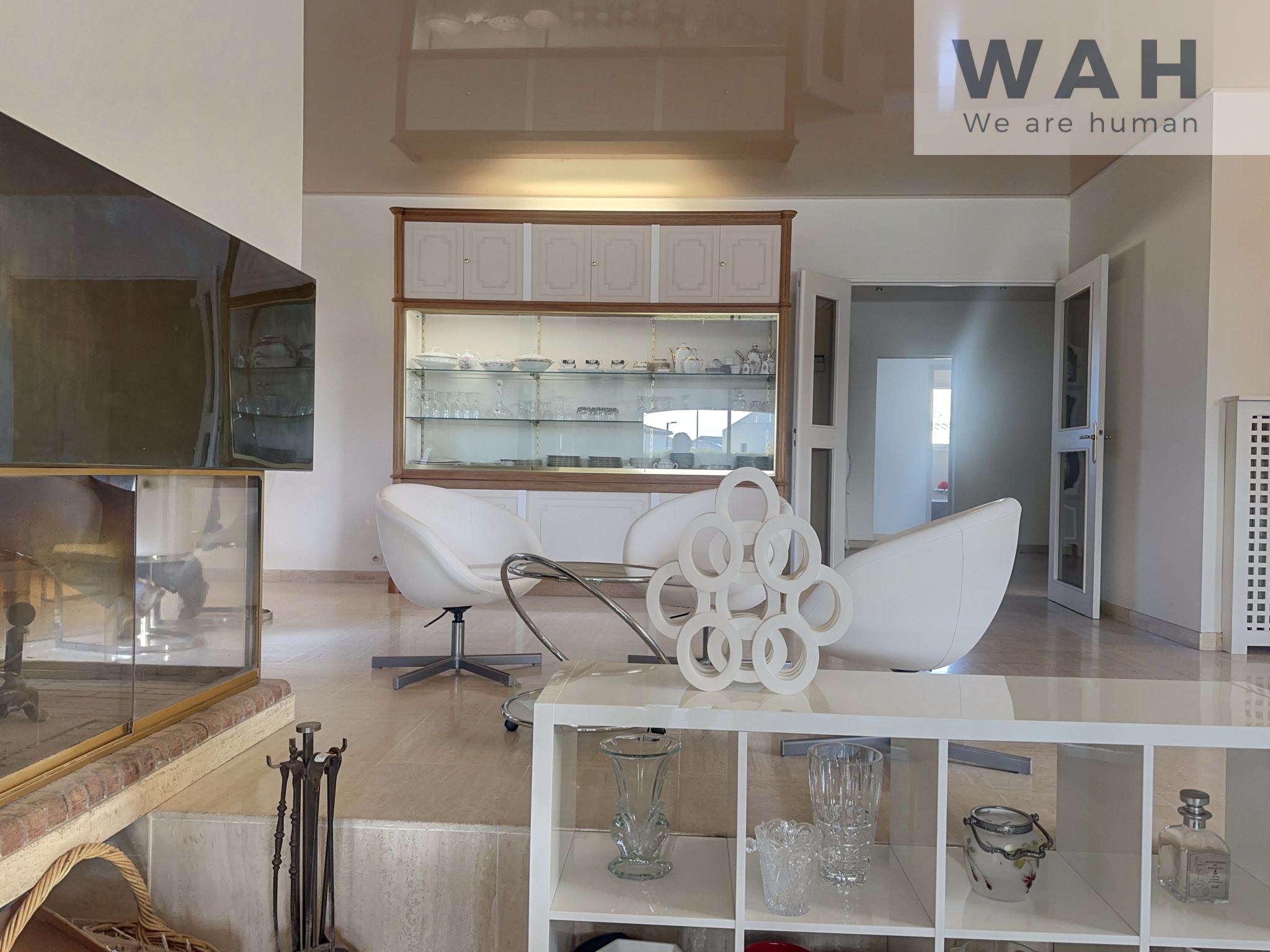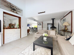 Belles prestations avec un carrelage de grande dimension 90x90, une cheminée Focus, un chauffage par le sol, la climatisation réversible, un adoucisseur d'eau et des panneaux photovoltaïques.