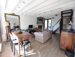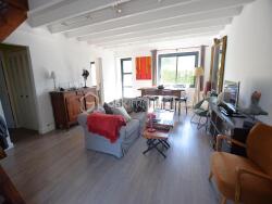 Au rez-de-chaussée, une pièce de vie accueillante et très lumineuse avec sa cheminée et son foyer fermé.
