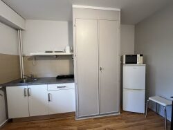 Disposant de 23 m² habitables incluant le studio privatif et la salle de bain partagée, « Marcel » vous propose une entrée fonctionnelle, un lumineux espace de vie de 17m² incluant le coin cuisine avec une plaque de cuisson amovible, un micro-ondes et un réfrigérateur avec congélateur. Marcel vous propose de se reposer sur son lit douillet et réviser sur l'un des bureaux mis à disposition.