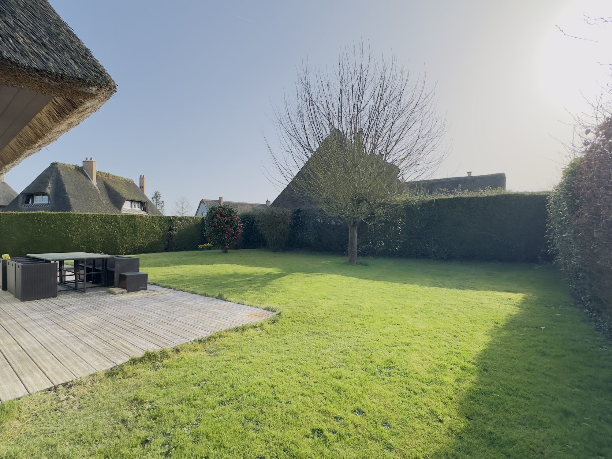 Érigée sur un terrain de 1400m² sans vis-à-vis, vous pourrez profitez de notre soleil normand en toute tranquillité !
