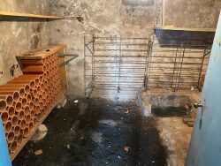 Une maison en pierre T3 d'environ 75m² composée au rdc d'une entrée une cuisine équipée ouverte sur séjour un wc à l'étage deux chambres une salle d'eau une terrasse un vaste terrain un garage un sous-sol en cave ch indi élec