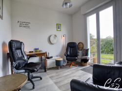 PENMARC'H - À quelques minutes du bord de mer, cette maison de 169 m² a été pensée pour qu'on s'y installe vraiment. Au rez-de-chaussée, le séjour s'organise autour d'un poêle à bois suspendu qui ancre l'espace. La cuisine aménagée et équipée dispose d'un coin repas indépendant, prolongée par une arrière-cuisine buanderie. Attenant, un espace mezzanine change de rôle selon les besoins : atelier, bureau, activité indépendante. Une chambre et un WC indépendant complètent le niveau. À l'étage, trois chambres lumineuses aux volumes bien proportionnés se partagent une salle de bains récente et un wc. Le terrain de 2 500 m² offre de multiples possibilités pour laisser libre cours à vos envies.