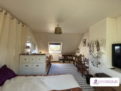 A l'étage, deux confortables chambres, dont une qui peut être divisé en deux, une salle de bain et des WC indépendant. Vous aurez également la possibilité de finir d'aménager une quatrième chambre selon vos envies.