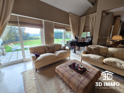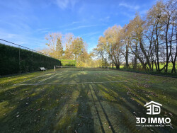 Un cadre rare. Une propriété unique. À l'abri des regards, cette maison d'architecte s'inscrit dans un environnement naturel absolument remarquable.Ici, le calme est réel, la verdure omniprésente, et la sensation d'espace immédiate. Implantée au coeur d'un parc arboré de près d'un hectare, bordé par un ruisseau, la propriété offre une atmosphère paisible, presque confidentielle, où chaque saison révèle un décor différent.Et pour aller encore plus loin dans la liberté et les projets : la possibilité d'acquérir jusqu'à 1 hectare 40 de prairie supplémentaire, un atout rare et précieux sur le secteur. Idéal pour un projet équestre, des animaux ou simplement pour préserver un écrin de nature autour de soi. La maison développe de très beaux volumes, pensés pour une vie familiale confortable comme pour recevoir.Les pièces de vie sont lumineuses, ouvertes sur l'extérieur, avec des vues dégagées sur le parc.La distribution permet à chacun de trouver sa place : plusieurs chambres, des espaces nuit bien distincts, des salles de bains réparties intelligemment, un bureau, des espaces de détente. Le sous-sol complet, avec accès indépendant, ouvre encore le champ des possibles : accueil d'invités, espace loisirs, salle de jeux, ou projet plus autonome ou professionnel selon les besoins. À l'extérieur, le terrain de tennis privé, les perspectives sur la nature environnante et l'absence de vis-à-vis renforcent ce sentiment rare d'être ailleurs, tout en restant à proximité des commodités.
