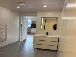 Une maison rénovée de Type 3 d'environ 61m² en rez-de-chaussée composée d'une cuisine aménagée ouverte sur un vaste séjour donnant sur une terrasse deux chambres une salle d'eau avec wc une cave buanderie ch indi électrique par pompe à chaleur