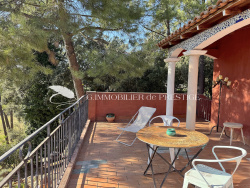 En exclusivité, à Bédoin, dans un environnement boisé, une belle villa atypique de 150 m2 construite en 1979 avec une vue dominante sur un terrain en restanques clôturé de 1400 m2 environ.