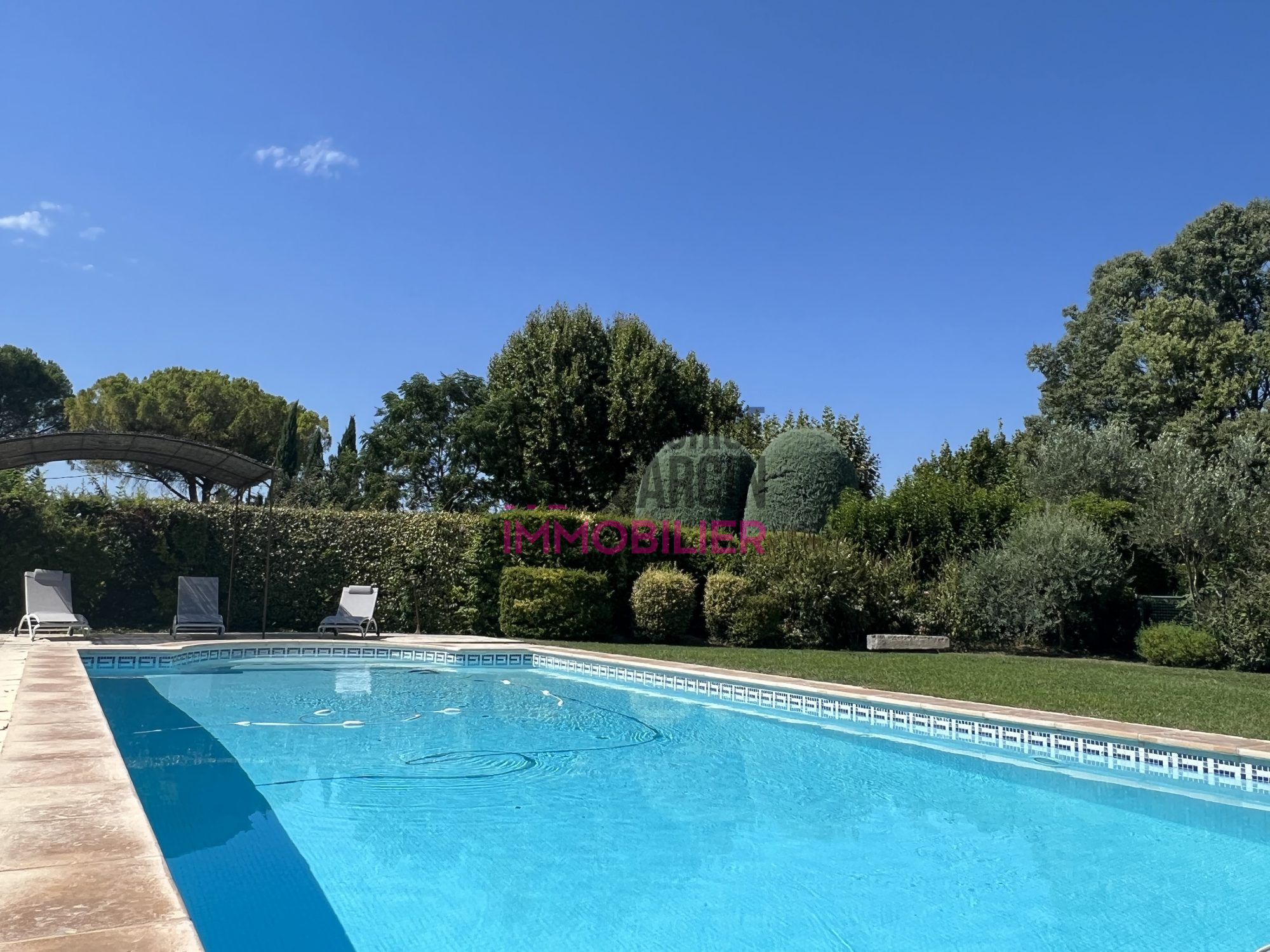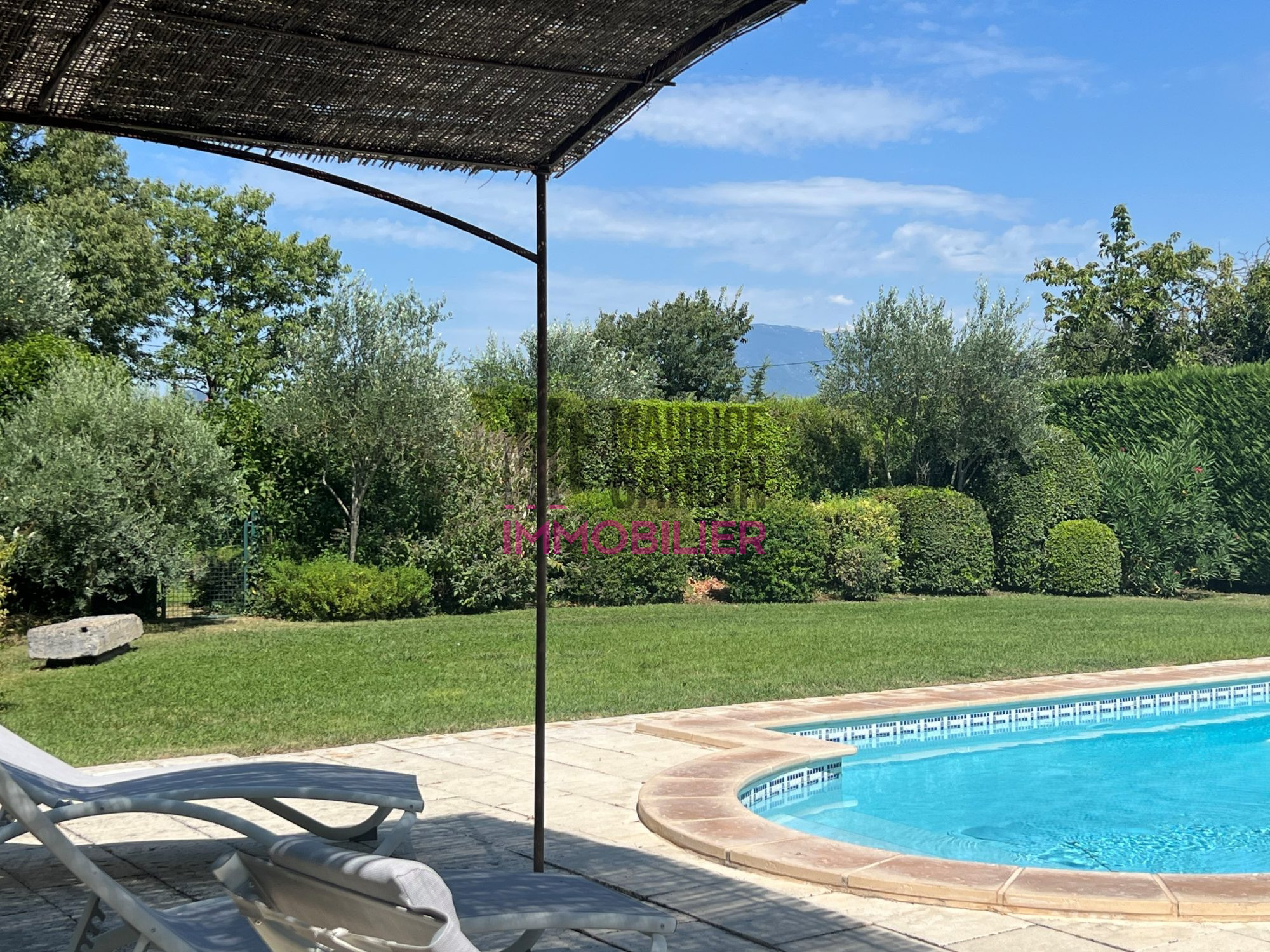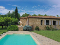 Située dans la campagne de Carpentras, exposée plein Sud, une belle villa de plain pied construite en 1986 de 230m2 environ dans un jardin entièrement clos et arboré de 3 500m2 avec une piscine. Cette demeure de charme en pierre se compose de pièces aux beaux volumes, lumineuses et agréables. Un vaste séjour avec une cheminée, un sublime patio de 16 m2 qui s'ouvre à ciel ouvert et décuple la lumière, une cuisine équipée, trois belles chambres et deux salles de bain dont une avec douche. Prestations de qualité : Nombreux placards, garage et abri voiture, cave à vin, buanderie, chauffage central, arrosage automatique, climatisation réversible, fibre, interphone, portail électrique, double vitrage, vide sanitaire, fosse septique. Cette villa bénéficie de l'eau de ville ainsi que du canal de Carpentras pour les extérieurs.