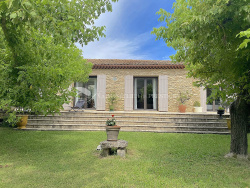 Située dans la campagne de Carpentras, exposée plein Sud, une belle villa de plain pied construite en 1986 de 230m2 environ dans un jardin entièrement clos et arboré de 3 500m2 avec une piscine. Cette demeure de charme en pierre se compose de pièces aux beaux volumes, lumineuses et agréables. Un vaste séjour avec une cheminée, un sublime patio de 16 m2 qui s'ouvre à ciel ouvert et décuple la lumière, une cuisine équipée, trois belles chambres et deux salles de bain dont une avec douche. Prestations de qualité : Nombreux placards, garage et abri voiture, cave à vin, buanderie, chauffage central, arrosage automatique, climatisation réversible, fibre, interphone, portail électrique, double vitrage, vide sanitaire, fosse septique. Cette villa bénéficie de l'eau de ville ainsi que du canal de Carpentras pour les extérieurs.