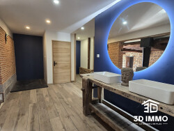 Rare. Exceptionnel. Inspirant. Au coeur du bocage avesnois, cette ancienne ferme dégage une atmosphère unique, portée par une vue panoramique et plongeante absolument remarquable, sans vis-à-vis, sur plus de 2 hectares 50 de nature. Acquise en 2018, la propriété a bénéficié de travaux lourds et structurants : toiture, maçonnerie, isolation, électricité en partie.Le socle est posé. L'essentiel est fait. Ce bien s'adresse aujourd'hui à des amateurs de fermettes de caractère, capables de se projeter et de finaliser un projet déjà engagé, avec une vision à long terme. La maison principale développe plus de 300 m² habitables, offrant de beaux volumes et un potentiel d'aménagement multiple. À cela s'ajoute un espace spa d'environ 115 m², conçu dès l'origine pour une activité professionnelle : normes incendie et accessibilité PMR respectées, bassin déjà installé et entièrement équipé (dossier technique disponible), peu de travaux restants pour une mise en exploitation rapide. Le projet initial de spa peut être relancé immédiatement.L'ensemble peut également convenir à une activité paramédicale, notamment pour des kinésithérapeutes, grâce aux volumes, à l'accessibilité et au cadre exceptionnel. De nombreuses dépendances complètent la propriété : grange, garage, étables, remise, offrant encore de réelles perspectives d'aménagement ou de développement.Le bien est raccordable au tout-à-l'égout une fois les travaux achevés. Un prévisionnel financier a été établi et sera communiqué uniquement sur demande sérieuse. Un bien à part.Un lieu pour habiter, entreprendre et accueillir, dans un cadre naturel d'une rare beauté.