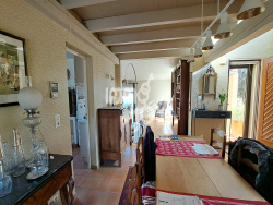 The ground floor features a spacious, light-filled living area with dual exposure, enhanced by a fireplace insert and large sliding glass doors opening onto the garden. The fitted kitchen, a laundry room, and two garages complete this level. Two bedrooms, each with a mezzanine, add both charm and functionality, along with a bright shower room and separate toilets. Upstairs, an open office space offers a versatile area suitable for remote working or relaxation. An additional bedroom and a bathroom with separate toilets complete the floor. The house requires a decorative update to the interior: a more contemporary refresh would enhance the volumes and increase the property's value.