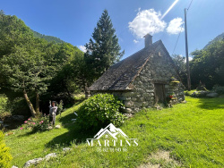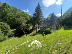 VAL D'AZUN - Terrain de loisir à 10kms d'ARGELES. Au coeur du Val d'Azun, terrain de loisir NON CONSTRUCTIBLE, en zone rouge, D'une surface totale de 8.300 m2 environ (en 2 parcelles de 5.000m2 + 3.300m2 bordés par le gave). Sur lequel a été édifié un ancien moulin d'une surface au sol d'environ 15m2. Pas d'habitation possible, utilisation uniquement en tant que terrain de loisir. Altitude 850m.