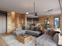 Pensé pour le bien-être avec de généreux espaces, personnalisable, et une vue magnifique sur les montagnes et la station, le chalet penthouse accueille idéalement famille et amis dans 438m2 de surface utile.