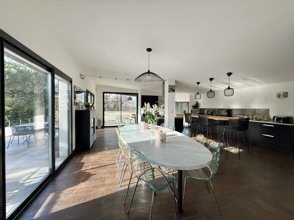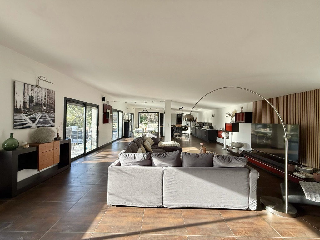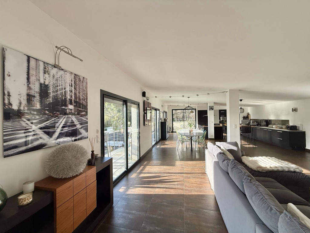 Une grande pièce de vie de 39 m², avec cuisine aménagée et équipée ouverte sur un salon/séjour convivial, sept chambres, dont deux avec salle d'eau privative, une salle de bains, une salle d'eau et deux WC indépendants ainsi qu'une salle annexe de 32 m² sur le palier, aménagée en salle de sport & espace co-working.