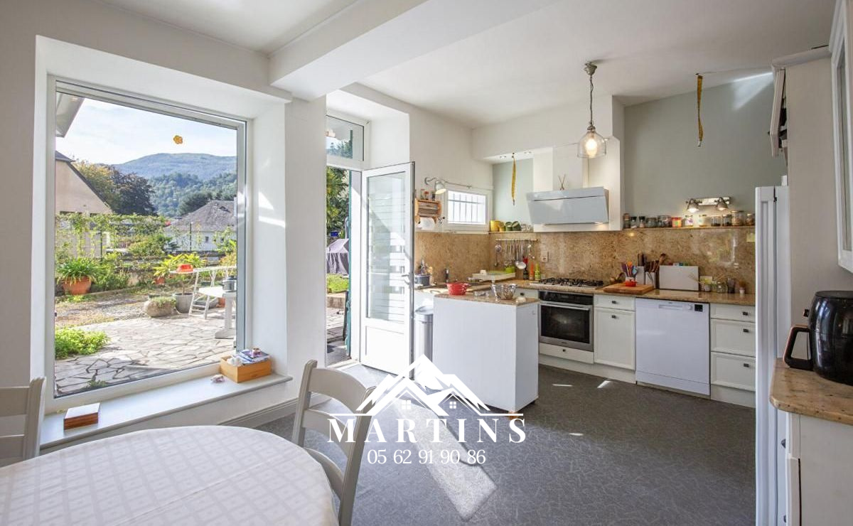 VALLÉE DES GAVES - Maison construite en 2003 d'une surface de 195m2 habitables + double garage de 36m2 sur terrain clos et plat de 855m2. Au carrefour des vallées et à proximité des écoles et commodités, découvrez sans attendre cette maison construite en 2003, et en excellent état. Sur un terrain clos de 855m2, cette maison de type 6 de 195m2 habitables environ comprend en rez-de-chaussée : pièce de vie de 50m2 avec poêle à granules et cuisine ouverte aménagée et équipée, arrière cuisine/cellier avec espace buanderie, véranda, 3 suites parentales avec salle d'eau et WC privatifs, et WC séparés. Accès sur terrasse avec pergola bioclimatique récente. A l'étage : une chambre, une salle de bains avec douche, WC séparés, et un grand palier pouvant accueillir une 5ème chambre / bureau, salle de jeux... Chauffage par poêle à granules récent et radiateurs électriques à inertie (5 ans). Double vitrage avec volets roulants électriques. Garage double carrelé de 36m2 avec portail électrique et cellier/atelier. Portail électrique et stores électriques. Cour goudronnée, jardin, terrasse et coin potager. Maison très bien entretenue, vous n'aurez plus qu'à poser les valises ! Renseignements complémentaires sur demande et visites sur RDV. Les informations sur les risques auxquels ce bien est exposé sont disponibles sur le site Géorisques : www.georisques.gouv.fr
