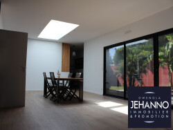 Développant près de 120 m² habitables, elle propose trois chambres, deux salles de bains modernes et une vaste pièce de vie de 50 m², équipée de puits de lumière, ouverte sur une cuisine entièrement équipée.