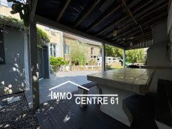 Carrouges: Vaste ensemble composé d'une maison d'habitation d'environ 160m2: entrée, grande pièce de vie avec cuisine aménagée de 65m2, 4 chambres, une salle de bains et 2 salles d'eau. Un possibilité de gite avec un second logement communiquant (accès indépendant réalisable) : pièce de vie avec bar, cuisine et mezzanine, 2 chambres, salle d'eau-wc. Grand garage 2 voitures de 40m2, atelier 20m2 et cave. Terrasse avec préau et barbecue, bassin et jardin sans vis à vis. Fenêtres PVC, chauffage aérothermie et électrique. Ref: JG132B Prix: 185 000EUR (Honoraires compris charge Vendeur)