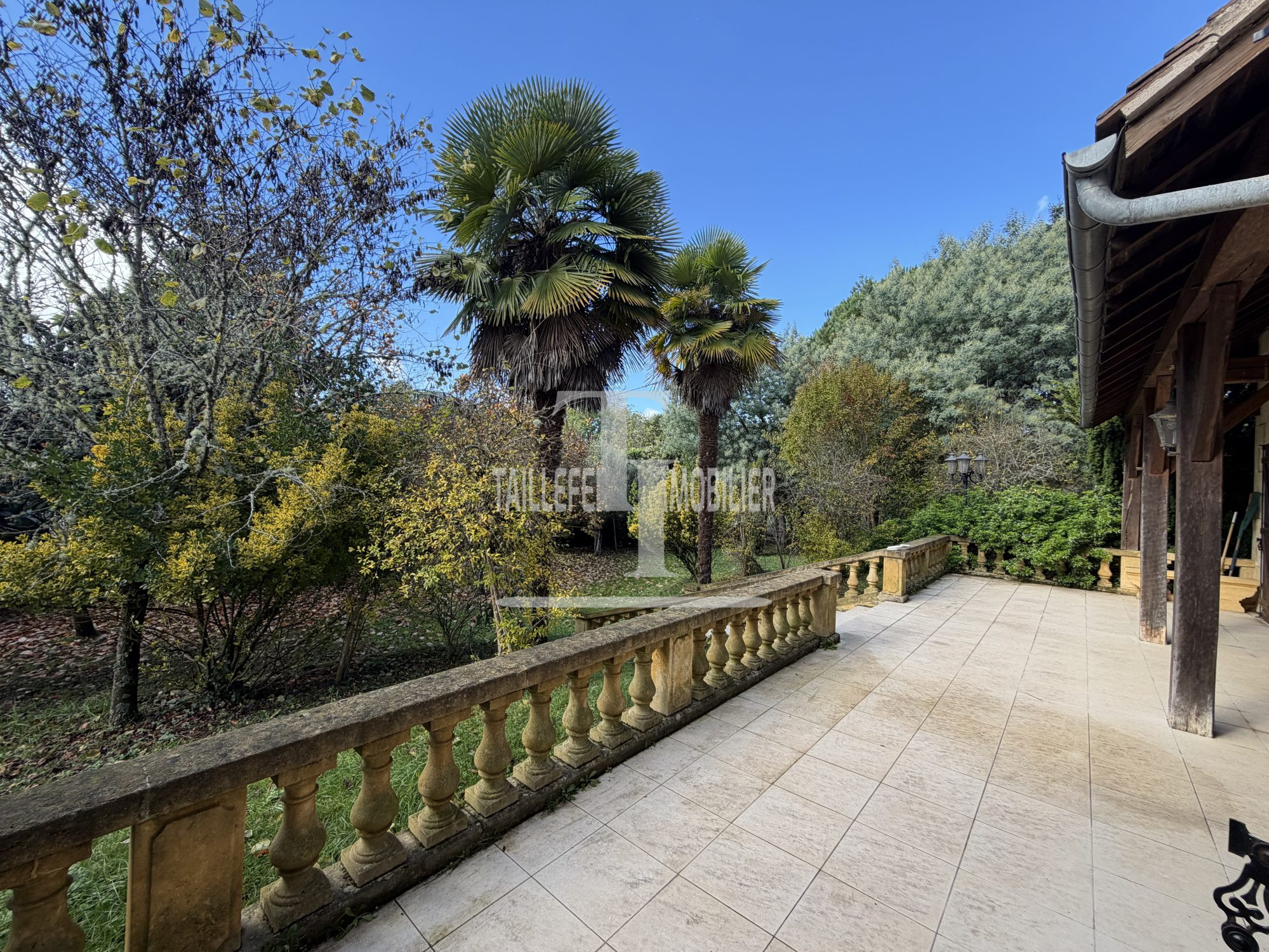 A l'extérieur, sur parcelle de 7000 m² : beau terrain clos et arboré, prairie avec captage d'eau, allée, terrasse couverte.