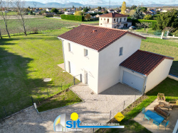 AM2895- 20 Min Sud VIENNE (38200) / Secteur calme et prisé d'ASSIEU (38150) SIT IMMOBILIER vous propose à la VENTE cette VILLA individuelle, normes RE2020, en FRAIS DE NOTAIRE REDUITS d'environ 100m2 HABITABLES, offrant une pièce à vivre lumineuse de 45m2 avec cuisine équipée ouverte sur séjour, 3 CHAMBRES avec placards, salle de bains aménagée (baignoire + douche), 2 wc (poss. 2ème salle d'eau) et garage attenant. Prestations de qualités : Chauffage de type pompe à chaleur AIR/EAU avec plancher chauffant au rez-de-chaussée, mesuiserie RAL 7035, séjour avec 2 baies vitrées,, WC suspendus, terrain clos, engazonné et arboré, avec coin terrasse... Assurances (décennales, dommage ouvrage). Le tout sur un terrain clos, engazonné et arboré d'environ 1209m2 (non constructible) offrant une très jolie vue sur les champs et le pilat. Au fond du impasse au calme, village avec ses commerces et son école accessible à pied. 5 Min à voiture du village de Vernioz avec ses commerces. 15 Min gare SNCF du Péage-de-Roussillon / 10 Min du futur échangeur VIENNE/REVENTIN-VAUGRIS DPE : A N'hésitez pas à contacter votre agence SIT IMMOBILIER située au 41, Cours de Verdun 38200 VIENNE au 04 74 78 33 33 pour tout renseignement complémentaire PRIX AFFICHE HONORAIRES AGENCE INCLUS A CHARGE VENDEUR « Les informations sur les risques auxquels ce bien est exposé sont disponibles sur le site Géorisques : www.georisques.gouv.fr »