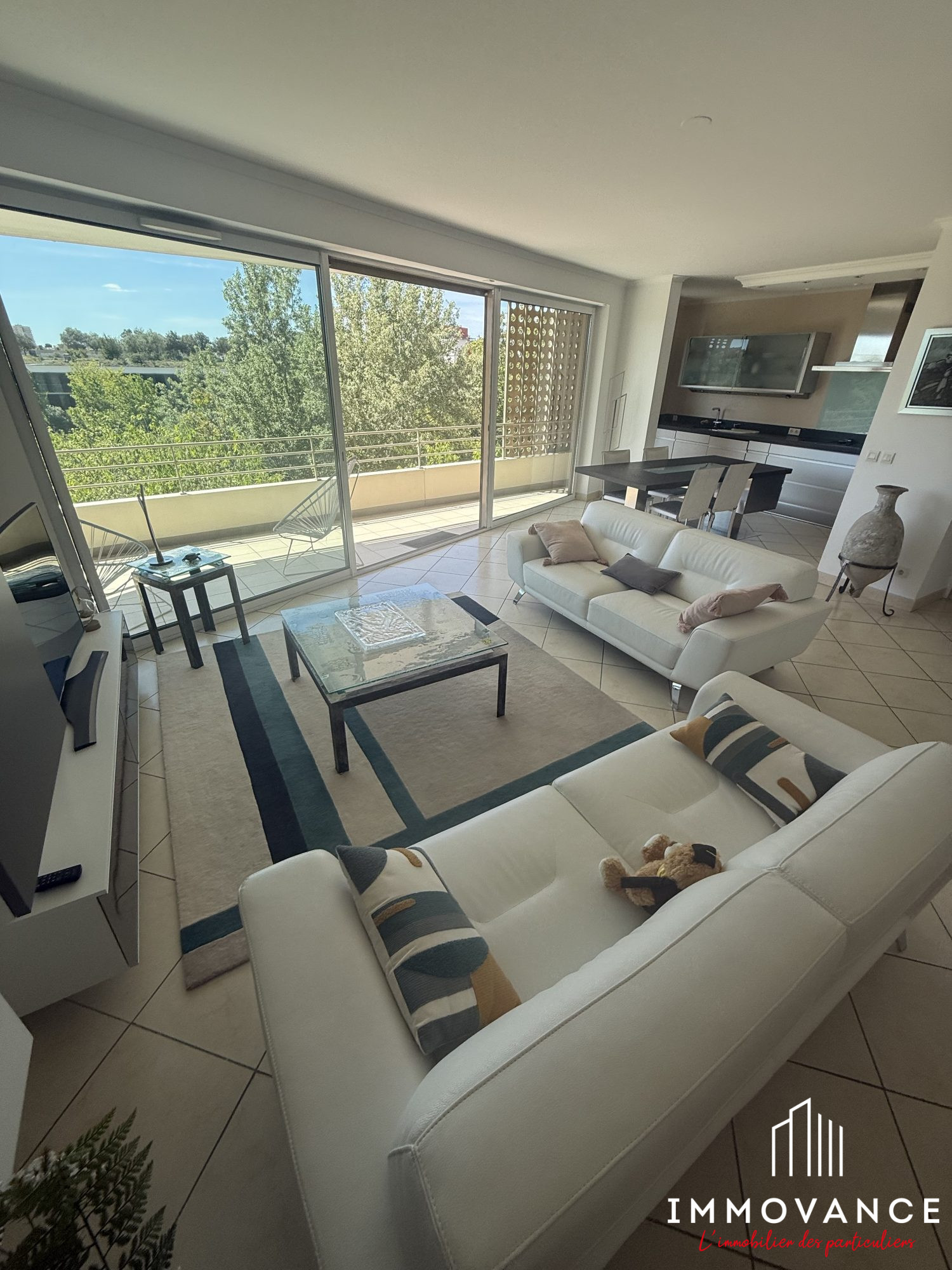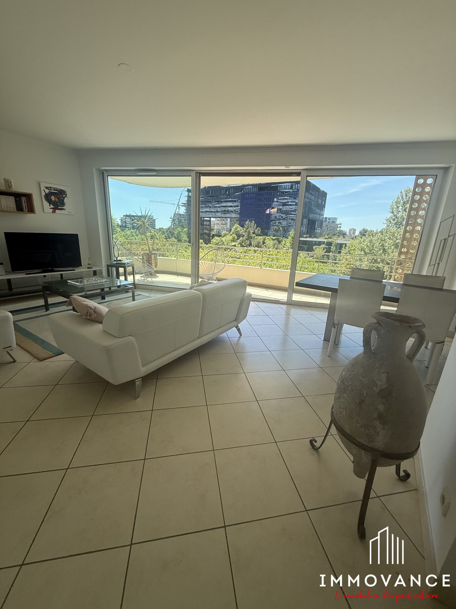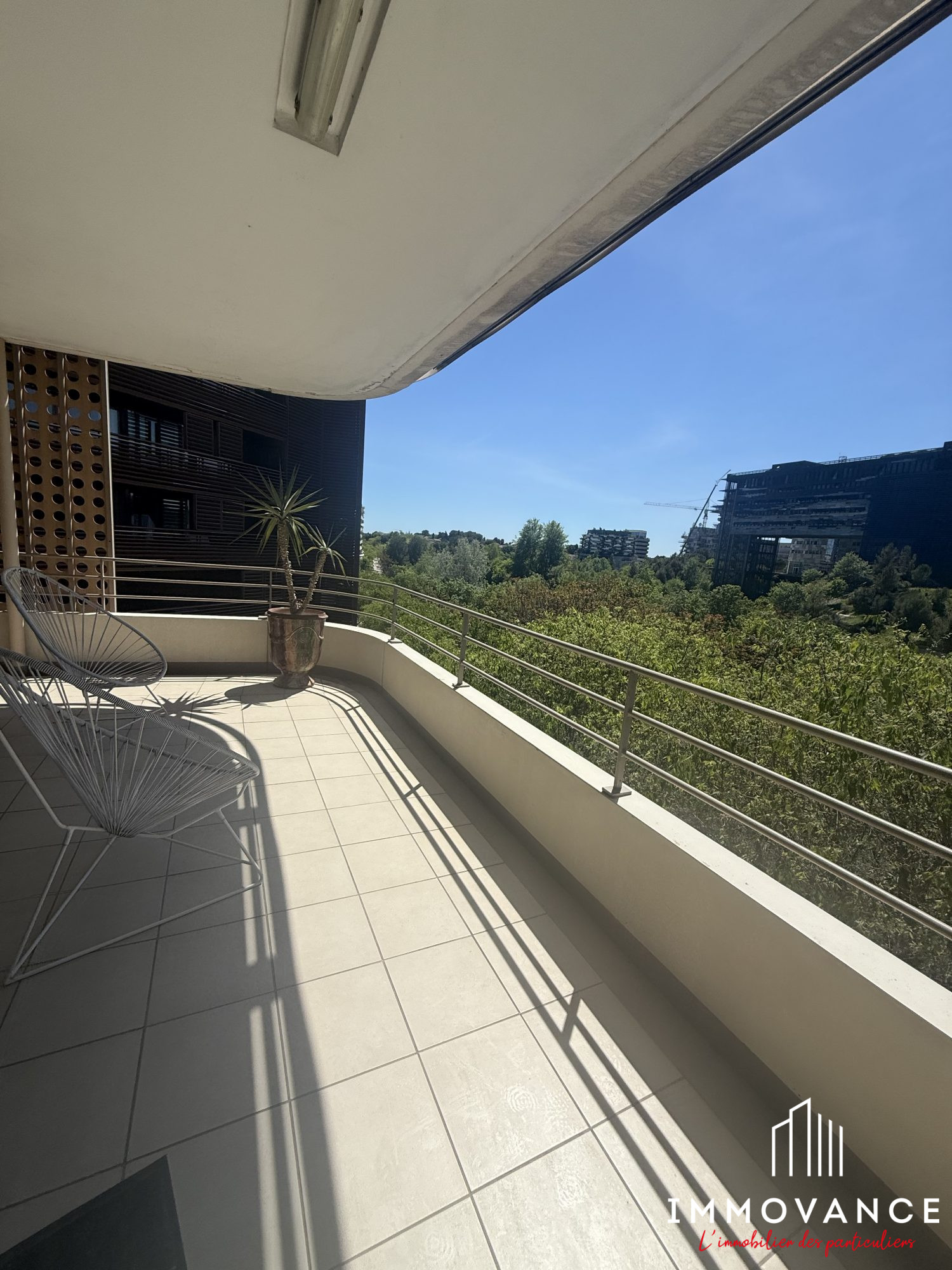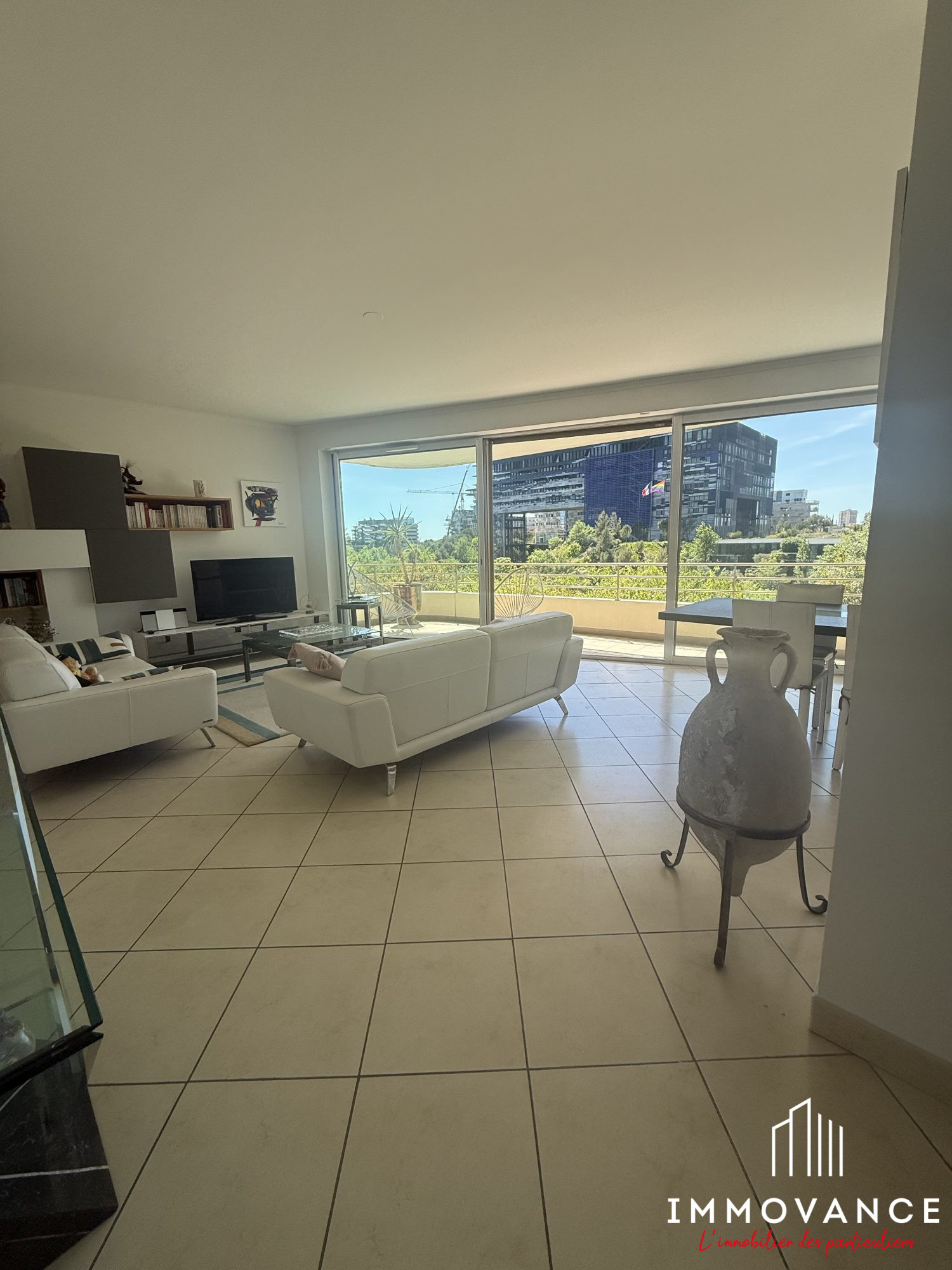 VENTE APPARTEMENT 5 PIECES MONTPELLIER BOUTONNET Exclusivité! Coup de coeur! En étage avec vue arborée et panoramique, très bel appartement de 107m2 habitables et 2 superbes terrasses de 65m2, grand séjour double traversant de 47m2, cuisine équipée, 3 chambres, nombreux placards, 2 salles de bains, 2 w.c, climatisation réversible, grand garage électrifié, parking extérieur. Résidence de standing avec ascenseur, au calme. Emplacement de 1er ordre à proximité immédiate du centre ville, des commerces, des écoles et du Tramway. Produit rare! Classe énergie : B ACTEUR SUD 04.67.03.03.88