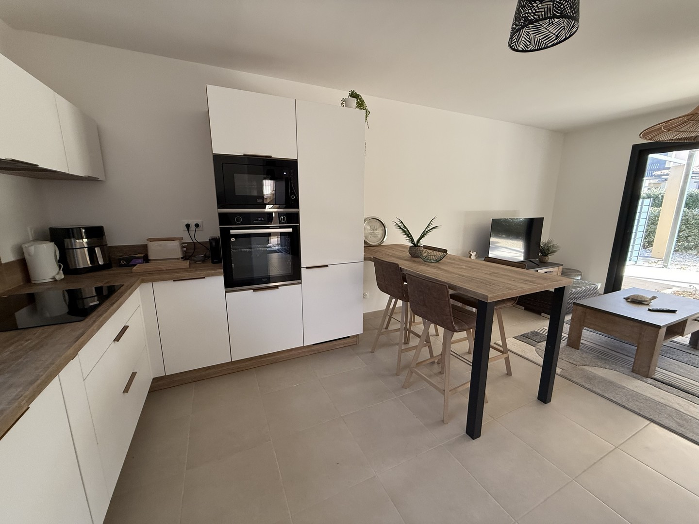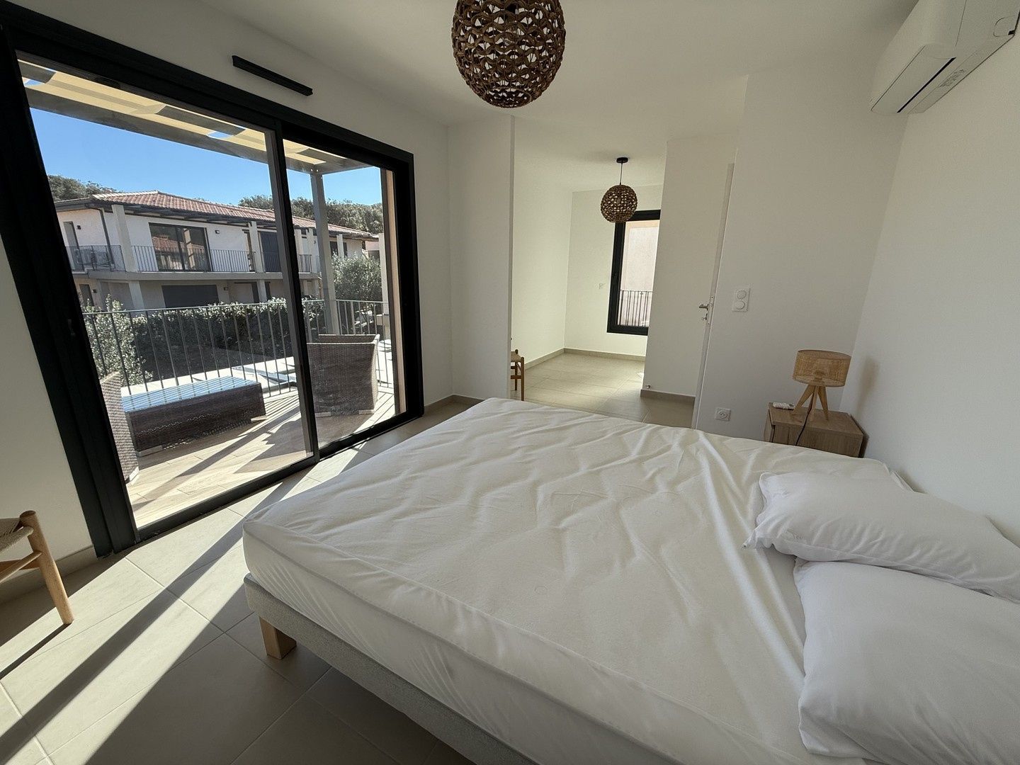 L'agence STG Immobilier, spécialiste de l'immobilier à Ajaccio, vous propose en exclusivité ce bel appartement T4 récent d'une superficie de 92 m2, offrant de très belles prestations ainsi qu'un jardin privatif de 227 m2, véritable prolongement de l'espace de vie. Idéalement situé à proximité immédiate d'Ajaccio, sur la commune d'Alata, secteur Trova, le bien bénéficie d'un environnement calme et résidentiel tout en restant à quelques minutes seulement des commodités et commerces de proximité. L'appartement se compose d'une spacieuse pièce de vie de 41 m2, comprenant un salon et une cuisine ouverte, avec un cellier attenant. Cet espace s'ouvre sur deux terrasses distinctes, permettant de profiter pleinement du jardin arboré et de créer différents espaces de détente ou de repas en extérieur. La partie nuit comprend deux chambres, ainsi qu'une suite parentale avec dressing et salle de bain. Les prestations sont de qualité : menuiseries aluminium et PVC double vitrage, volets roulants électriques, climatisation réversible, cumulus thermodynamique, VMC double flux, système de domotique avec gestion à distance, portail électrique et visiophone. Le bien est situé au sein d'une copropriété récente, à taille humaine et parfaitement entretenue, offrant un cadre de vie agréable et sécurisé. Taxe foncière : 963 EUR / an Côté copropriété :