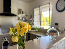 Villa à vendre à Meyreuil, piscine et prestations haut de gamme À seulement 10 minutes du centre-ville d'Aix-en-Provence, découvrez cette superbe villa d'environ 207,80 m2 nichée sur un vaste terrain paysager de 3 856 m2, avec un beau jardin paysagé agrémenté d'une piscine et d'un pool-house. Cette maison à vendre à Meyreuil séduit par ses volumes généreux et ses prestations de qualité. Elle dispose d'un espace de vie lumineux, un salon avec cheminée de 60 m2 avec plafond cathédrale,et d'une cuisine américaine moderne, entièrement aménagée et équipée ouverte sur le coin repas et le séjour Son vaste hall d'entrée dessert l'espace à vivre et également ses trois chambres en rez-de-chaussée dont une très spacieuses, un bureau, une salle de bains, et un WC séparés. À l'étage, une suite parentale avec salle d'eau, WC et un grand dressing offre un espace nuit confortable et intimiste. Les prestations sont au rendez-vous : oChauffage au sol par pompe à chaleur oAspiration centralisée oPiscine avec pool house, cuisine d'été et four à pizza oTerrasse couverte pour profiter pleinement des extérieurs oDouble garage indépendant . Portail automatique Cette villa est idéalement située, avec un accès rapide vers Aubagne, Marseille et Aix-en-Provence, alliant calme, nature et proximité urbaine. * Une opportunité rare à Meyreuil, idéale pour une famille recherchant confort, espace et environnement privilégié. Prix : 997 000 EUR Honoraires agence à charge vendeur. DPE : C Estimation des coût énergie du logement : entre 1800 et 2480 EUR / an ( prix moyen energétique 2021, 2022, 2023 ) Les informations sur les risques du secteursont disponibles sur le site Géorisques : georisques.gouv.f