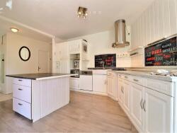 - Cuisine ouverte aménagée avec îlot central, conviviale et fonctionnelle