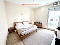 Il comprends : un double séjour, une cuisine aménagée et équipée avec des matériaux et un électroménager de qualité (plaques à induction, lave vaisselle, four, réfrigérateur), une chambre, une salle d'eau avec douche extra plate.