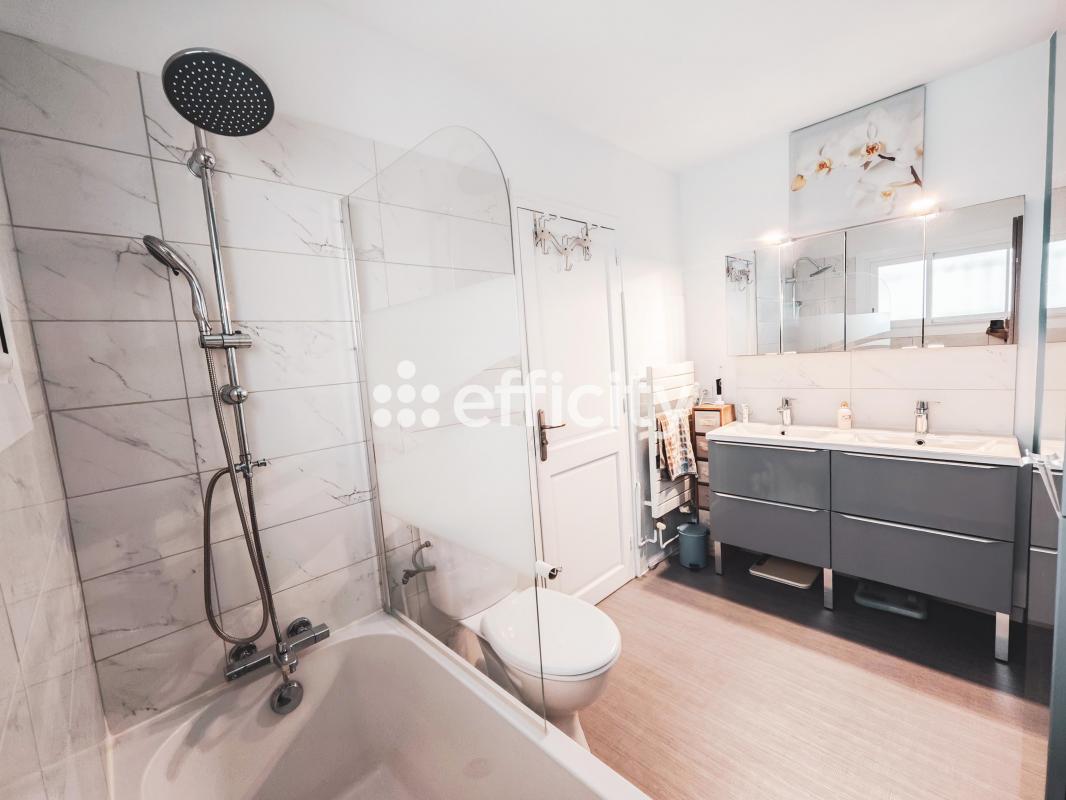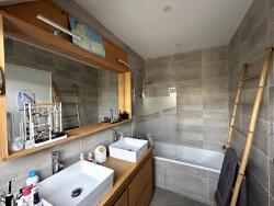 A l'étage, le COIN NUIT se compose de trois CHAMBRES, d'une SALLE D'EAU AVEC WC, et d'une spacieuse SUITE PARENTALE AVEC SALLE DE BAIN, WC et DRESSING, offrant à chacun CALME et INTIMITÉ.