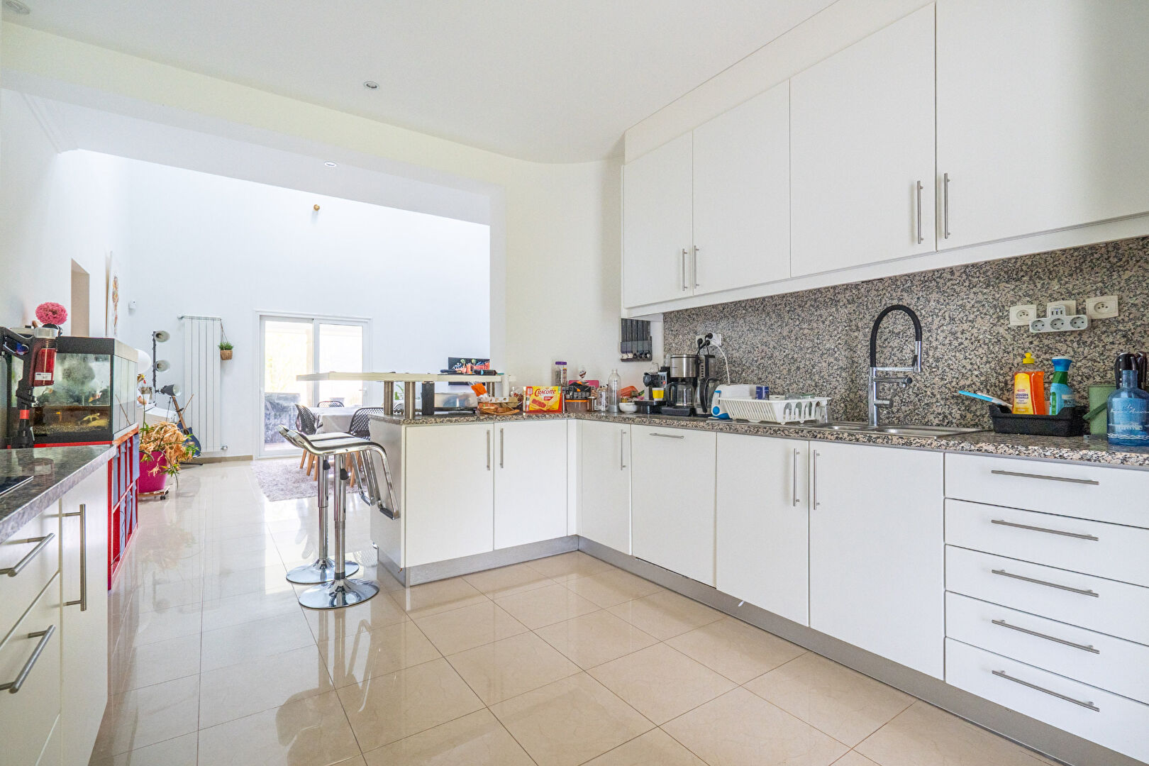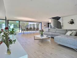 Cette maison aux grands volumes et lignes épurées offre des prestations haut de gamme et des matériaux nobles ; baies aluminium, chauffage au sol sur toute la maison, climatisation réversible, terrasse en bois exotique IPE, arrosage automatique, adoucisseur d'eau, système sono intégré, porte d'entrée biométrique à empreinte digitale, vidéosurveillance, volets roulants électriques centralisés pilotés en Wifi.