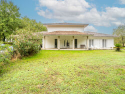33320 - LE TAILLAN-MEDOC. COUP DE COEUR. C'est dans un secteur CALME à 20 minutes de Bordeaux, que prend place cette sublime maison d'ARCHITECTE située en SECONDE LIGNE. Dès votre entrée, vous serez conquis par une magnifique pièce de vie de plus de 90m2 baignée de lumière avec sa cuisine ouverte entièrement équipée et sa CAVE A VIN CLIMATISEE idéale pour une grande famille ou pour ceux qui aiment recevoir. Les 5 chambres dont une magnifique suite parentale en rez-de-chaussée possèdent chacune leur SALLE D'EAU et DRESSING PRIVATIFS permettant de préserver l'intimité des uns et des autres. Deux des 4 chambres à l'étage sont agrémentées d'une belle terrasse avec vue dégagée.