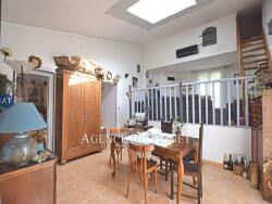 Au 1?? niveau : une salle à manger de 16 m² bénéficiant d'une grande hauteur sous plafond et d'une terrasse, une cuisine indépendante équipée donnant sur terrasse, 2 chambres climatisées, une salle de bains avec WC.