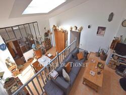Au 1?? niveau : une salle à manger de 16 m² bénéficiant d'une grande hauteur sous plafond et d'une terrasse, une cuisine indépendante équipée donnant sur terrasse, 2 chambres climatisées, une salle de bains avec WC.