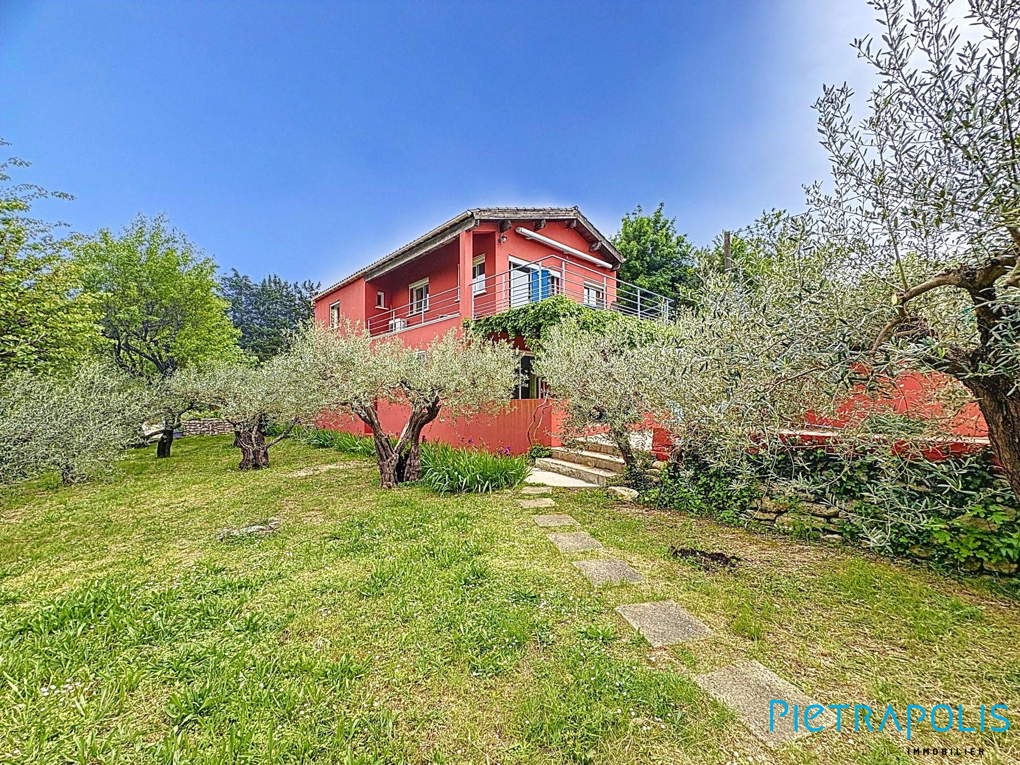 Sur les hauteurs de Sommières, dans un quartier prisé, cette superbe villa offre 187 m2 habitables sur une parcelle de 1200 m2 paysagée avec piscine. Le séjour de 80 m2 est ouvert sur une large terrasse en partie couverte, il offre un espace salon avec poêle à granulés rotatif et une vaste salle à manger. L'espace jour est complété par un hall d'entrée et une cuisine équipée de qualité. Côté nuit : 2 grandes chambres et une salle de bain en rez de chaussée, à l'étage 2 chambres et une salle d'eau. En annexes, un cellier et un garage. Le jardin planté d'essences méditerranéenne et les terrasses offrent une vue panoramique et imprenable. La piscine entourée de murs en pierres sèches est chauffée et traitée aux UV. L'habitation est très confortable et peu énergivore, elle est équipée de panneaux photovoltaiques. La propriété est idéalement située, au calme et proche de toutes les commodités : écoles, collèges, lycée, cabinets médicaux et commerces. Les centres villes de Nîmes et Montpellier, les gares TGV et aéroport ainsi que les plages du littoral méditerranéen sont à moins de 40 minutes. L'accès autoroute A9 à moins de 15 minutes. Les informations sur les risques auxquels ce bien est exposé sont disponibles sur le site géorisques : www.georisques.gouv.fr