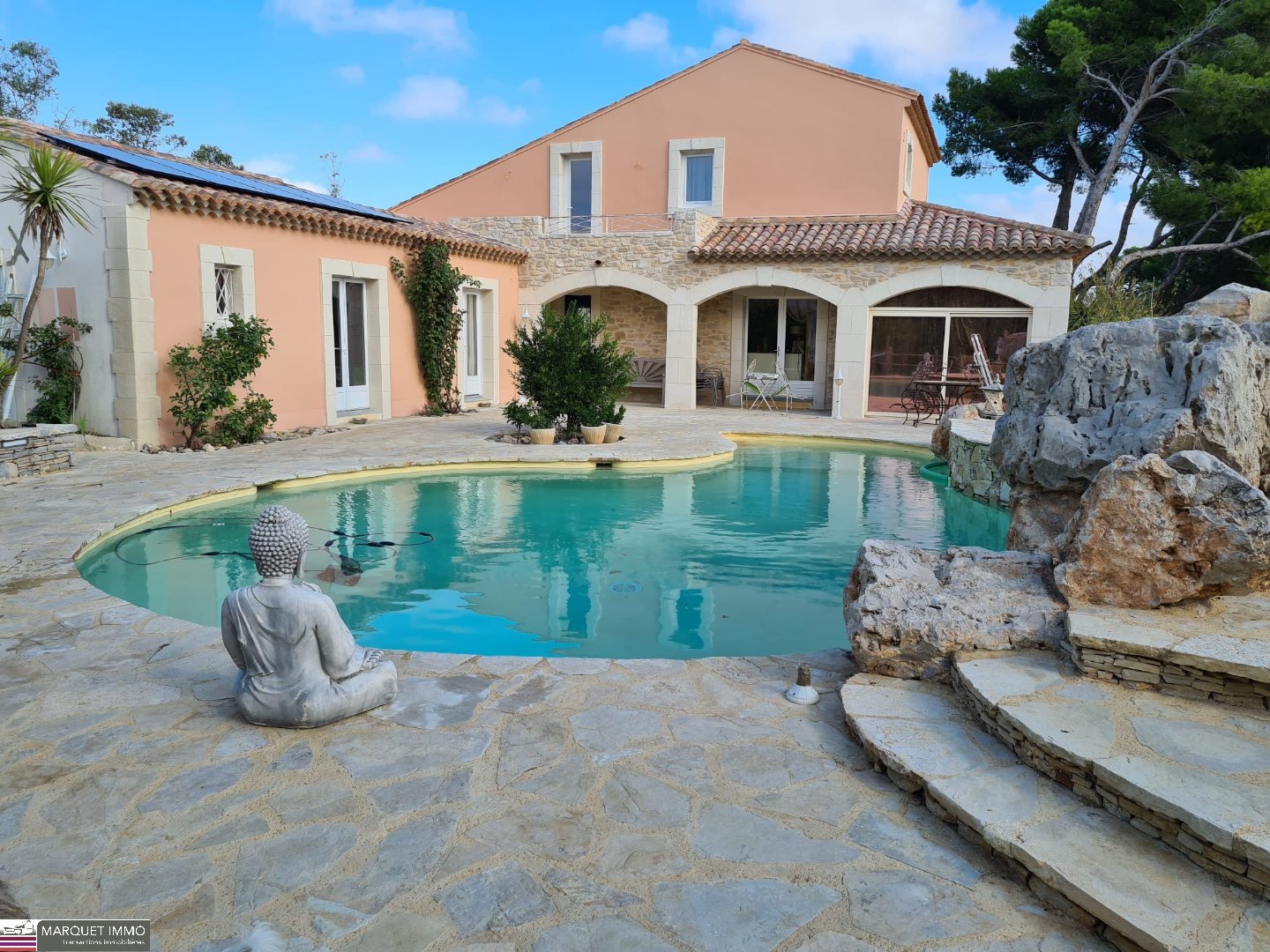 VENTE MAISON 7 PIECES CLAPIERS Exclusivité ! Dans un quartier résidentiel de Clapiers, superbe maison de 186m2 hab. sur beau terrain arboré de plus de 800m2, avec piscine, terrasse et pool house. Grande pièce de vie avec cuisine US équipée, bureau en mezzanine, 5 chambres + dressing, 1 salle de bains, 2 salles d'eau, buanderie, garage double et abri pour 2 voitures. Cette maison lumineuse aux volumes généreux et aux prestations soignées, avec climatisation réversible, est idéale pour une grande famille ou pour recevoir des amis. Il est possible d'y installer également son activité professionnelle. Au calme, dans un village prisé aux portes de Montpellier avec écoles, commerces, infrastructures sportives et future ligne 5 du Tramway, c'est un bien rare à visiter absolument. Classe énergie: C ACTEUR SUD 04.67.03.03.88