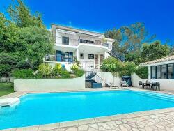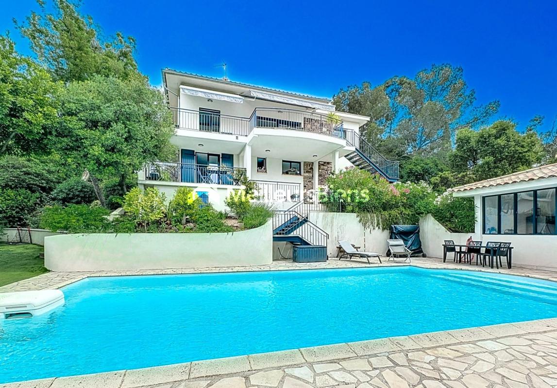 PRODUIT RARE ! Située dans une résidence de standing et sécurisée au coeur d'un véritable parc arboré, avec vue sur mer. Maison d'environ 152 m2 avec piscine. Le rez-de-chaussée est composé d'un grand séjour nous ouvrant les portes sur une grande terrasse donnant sur la piscine avec un aperçu mer, d'une cuisine équipée, 3 chambres, d'une salle de bain, 1 toilette, 1 salle d'eau. A l'étage, la villa compte 3 chambres supplémentaires, une salle de bains, un wc, et un espace de rangements. Également, vous disposerez d'un espace en sous-sol comprenant un garage et un appartement indépendant. L'extérieur se compose d'un parc de 2500 m2, arboré et bien entretenu. Un chalet d'environ 35 m2 vient compléter ce bien. Les points forts de cette villa sont incontestablement son emplacement, la proximité de la mer, piscine et les nombreuses possibilités. - Annonce rédigée et publiée par un Agent Mandataire -
