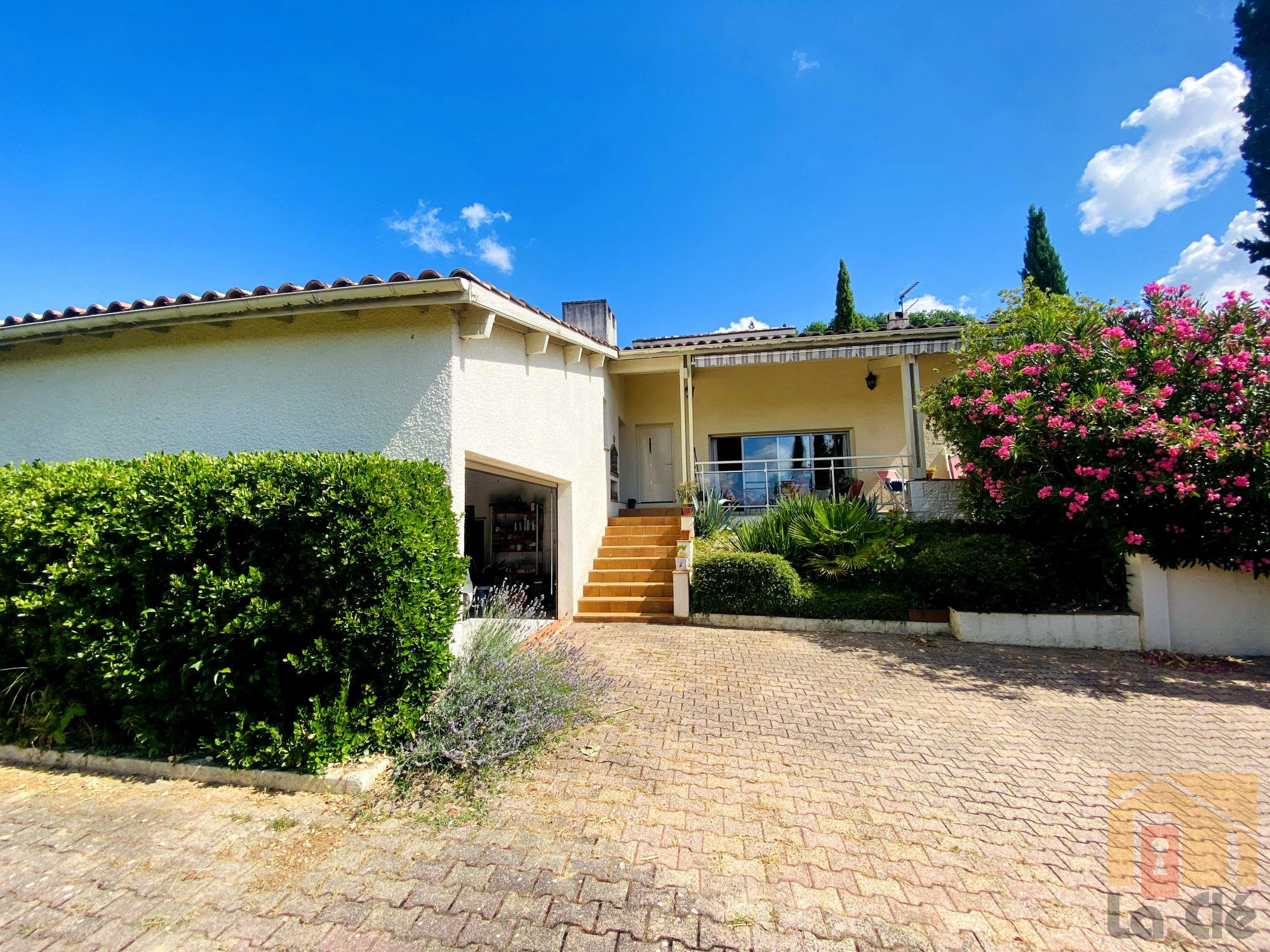 Au coeur du village de Colayrac, à pied de tous les commerces et à quelques minutes d'Agen - propriété composée d'une maison d'habitation avec atelier indépendant et appartement adjacent actuellement loué (une ouverture donnant sur la maison peut être réutilisée pour à terme rattacher la surface de l'appartement à la maison et y recréer des chambres). La maison se compose d'un beau hall d'entrée distribuant une cuisine indépendante très lumineuse, donnant sur la terrasse dominant le jardin, et un salon-salle à manger traversant très chaleureux de près de 40m2, complété d'un wc. A l'étage, 3 chambres spacieuses et une salle d'eau familiale avec wc. Grenier aménageable. Une cave / buanderie de 50m2 donnant en rez-de-jardin donne encore des possibilités de rangement et de confort. En limite de propriété et bénéficiant d'accès indépendants, un atelier en duplex d'une qurantaine de m2. Une porte de garage ferme la propriété et permet d'accéder à un stationnement privé. Jardin est arboré, plein sud, sans vis-à-vis, avec une ancienne pergola pleine de charme permettant d'y déjeuner en admirant les berges de Garonne. L'appartement T2 adjacent à la maison et bénéficiant d'un accès indépendant pourra apporter un complément financier. Panneaux solaire, tout à l'égout, double vitrage, pompe à chaleur Viessman, volet roulant. Un beau bien chaleureux et accueillant.