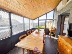 Une grande véranda isolée, véritable pièce de vie supplémentaire baignée de lumière naturelle.
