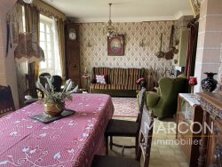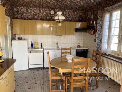 MARCON IMMOBILIER - CREUSE EN LIMOUSIN - Réf 88879 - SECTEUR MÉRINCHAL. Dans un village à la campagne proche des commerces, une maison sur sous-sol complet comprenant: entrée, véranda, cuisine, joli salon d'environ 25 m² avec une cheminée, 2 chambres, salle d'eau-wc. A l'étage: palier, 3 chambres, salle de bain, wc, greniers sur les côtés. Chauffage central au fuel. Grand garage au sous-sol. Terrain attenant d'environ 1200 m². Prix : 99 000 ? (honoraires d'agence inclus de 10 % TTC charge acquéreur). (Prix : 90 000 ? hors honoraires). Réseau de 3 agences en CREUSE : Aubusson, Guéret et La Souterraine. 05-55-66-20-37