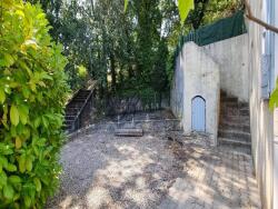 - En rez-de-chaussée se trouve l'entrée de la maison, desservant un grand garage de 25 m², une petite chambre avec sa salle d'eau privative ainsi qu'à l'escalier permettant d'accéder à l'espace de vie (au rez-de-jardin).