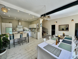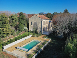 En campagne de Loriol-du-Comtat, ce très joli mas rénové séduit dès le premier regard. Ombragé par un beau platane, il est baigné de lumière quand l'hiver vient. Edifié en 1911, exposé sud, il offre 195 m2 environ avec un parc de 5000m2 environ complanté de chênes truffiers en production. Possibilité d'acquérir des parcelles supplémentaires de chênes truffiers. Une grange attenante avec une grande hauteur sous toit. Au rez de jardin, la porte ancienne ouvre sur un hall d'entrée et une belle pièce de 52 m2 composée de l'entrée, un salon/salle à manger avec une cuisine ouverte. Un second salon de 16m2. Une grande suite parentale avec une jolie mezzanine de 33 m2 avec sa salle de bain complète. Le bel escalier en tomettes tout en marches douces dessert un hall central qui donne sur trois chambres bellement décorées. Une chambre avec sa salle d'eau de 27m2, deux chambres de 11 m2 et 19 m2 avec une salle d'eau. Toilettes indépendantes. Convecteur électrique et climatisation réversible dans chaque chambre. Eau de ville et canal pour l'arrosage. Une piscine récente au sel, (liner, 9x3,50, 1,50 de profondeur) avec un volet électrique et une margelle en pierres de Crillon. Quatre abris voiture de 29m2 environ chacun et places de parking. Dépendances pour 63 m2. De belles hauteur sous plafond dans la bâtisse (5 mètres au rez-de-chaussée et 2,80 mètres à l'étage). Proche de la gare de Carpentras , TGV d'Avignon et de l'autoroute. Facile d'accès, à proximité des commerces et des axes routiers stratégiques (vers Avignon). Investisssement locatif, résidence secondaire ou principale.