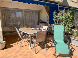 PORT CAMARGUE - SECTEUR PLAGE NORD Dans une superbe résidence avec piscine donnant sur le Quai d'Honneur, à 150 m de la plage et à proximité des commerces. Appartement en REZ-DE-JARDIN rénové de type 2 pièces cabine. Il est composé d'une entrée avec une grande cabine pouvant accueillir un lit double, une chambre avec placard, un séjour avec cuisine ouverte, une salle d'eau et un WC séparé. Une terrasse d'environ 52 m2 attenante au séjour et à la chambre, exposée SUD offrant une magnifique VUE PORT. Vendu meublé selon inventaire, parking privé, cellier privé. Volets roulants électriques, climatisation réversible. Disponibilité du bien : vente définitive à partir du 01/09/2026. Bien soumis au statut juridique de la copropriété. Nombre de lots : 289 à usage d'habitation