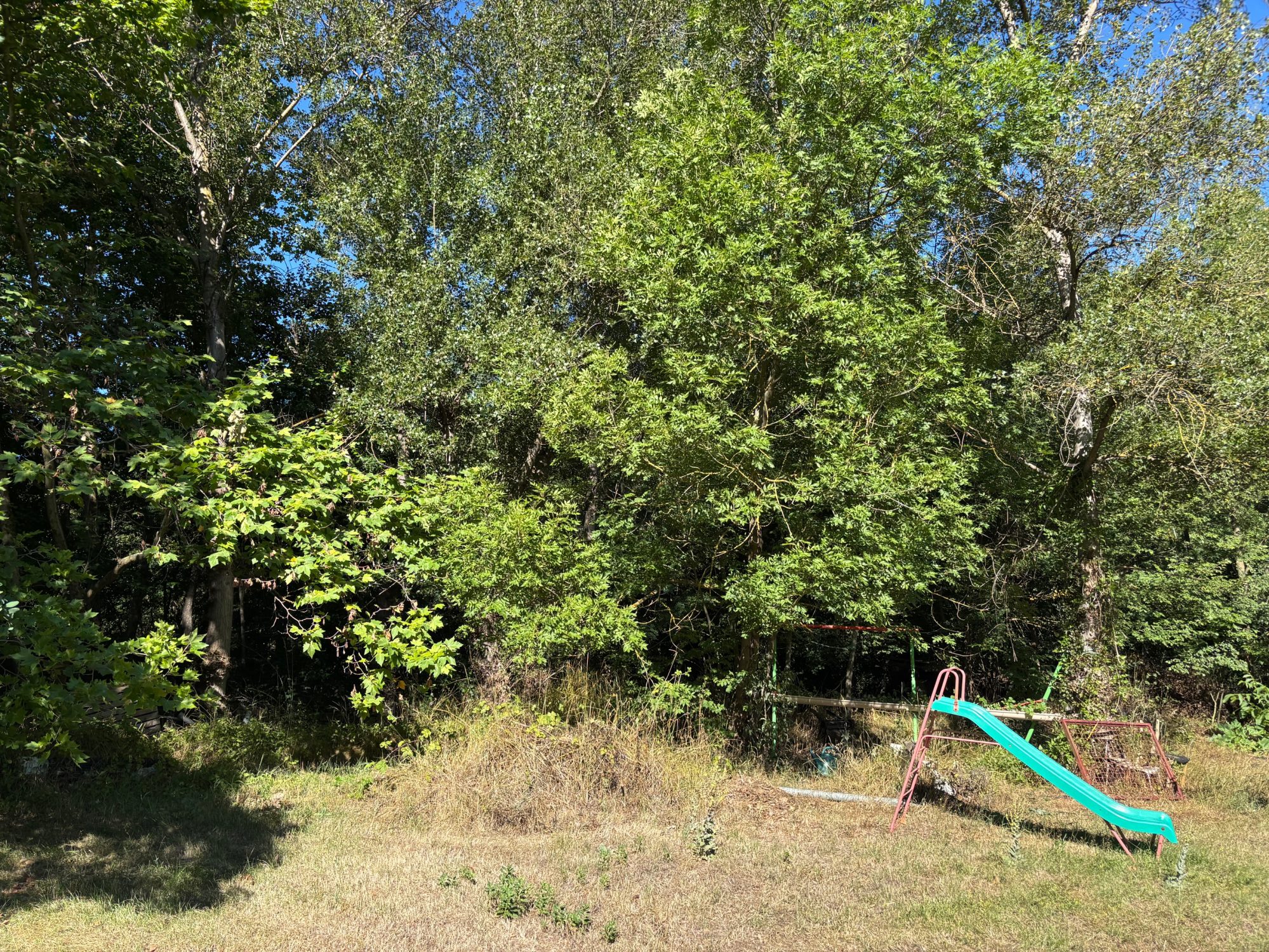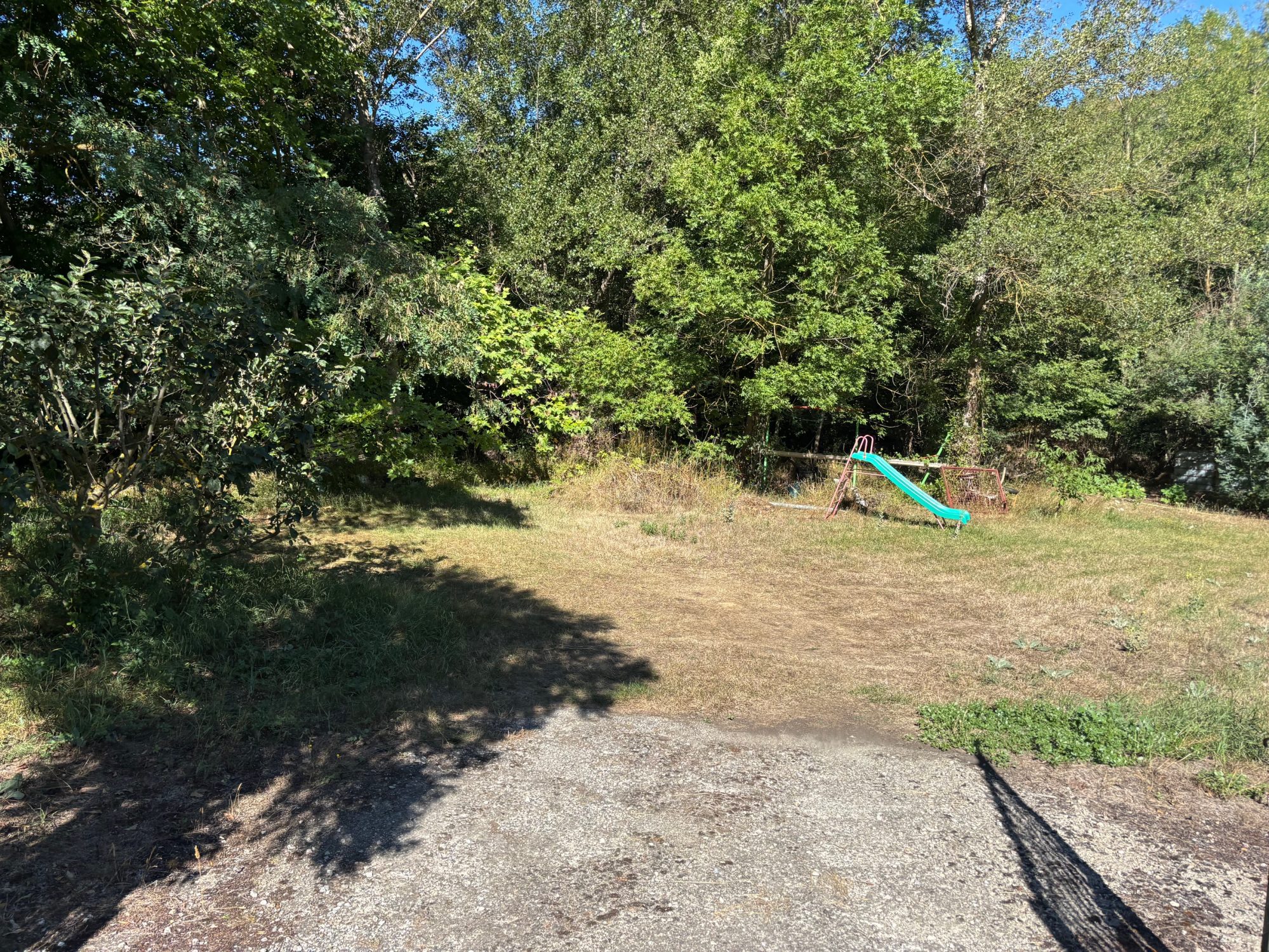 Verger à Céret en deux terrasses avec canal d'arrosage, accès voiture en bordure.