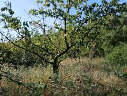 Verger à Céret en deux terrasses avec canal d'arrosage, accès voiture en bordure.