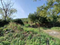 Verger à Céret en deux terrasses avec canal d'arrosage, accès voiture en bordure.